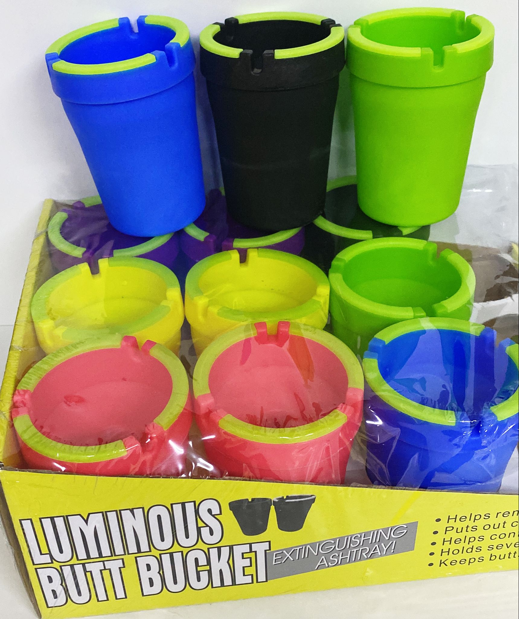 BUTT BUCKET ASSORTED COLORS GLOW IN THE DARK 12CT. BOX