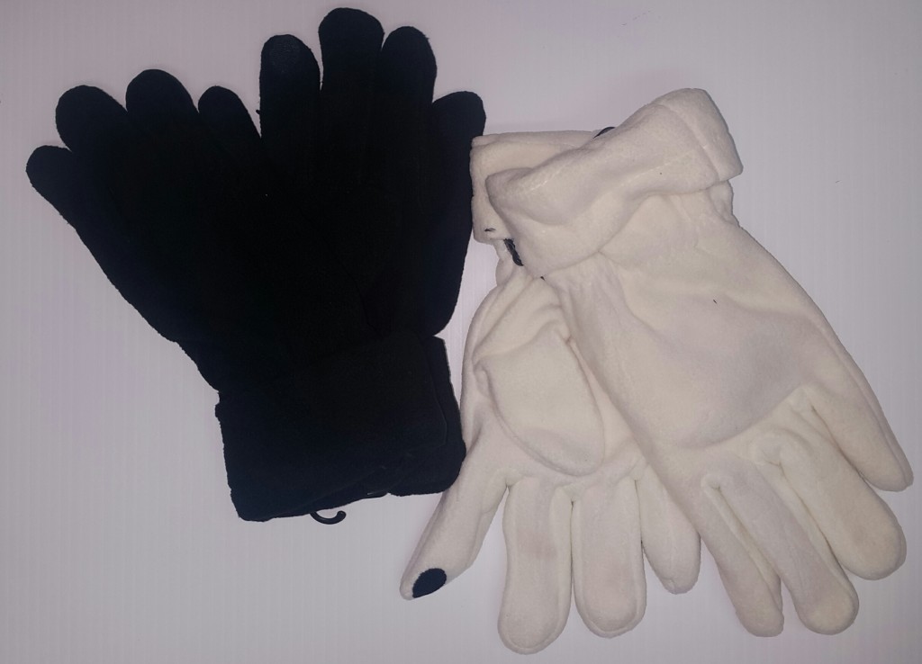 WINTER GLOVES FLEECE W/COVER BLACK&WHITE 12CT.