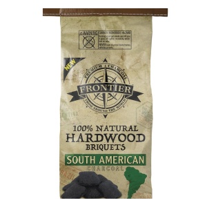 FRONTIER CHARCOAL HARDWOOD BRIQUETS 100% NATURAL 5/8LBS BAGS.