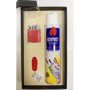 NZ CIGAR LIGHTER FLINTS, 300ML NEWPORT ZERO BUTANE RED 1CT.