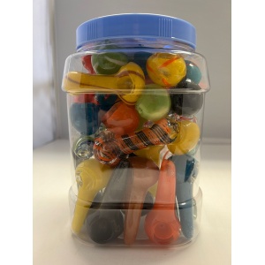 PREMIUM GLASS GOLD FUMING HANDPIPE ASST 3 INCH 50 18CT JAR.
