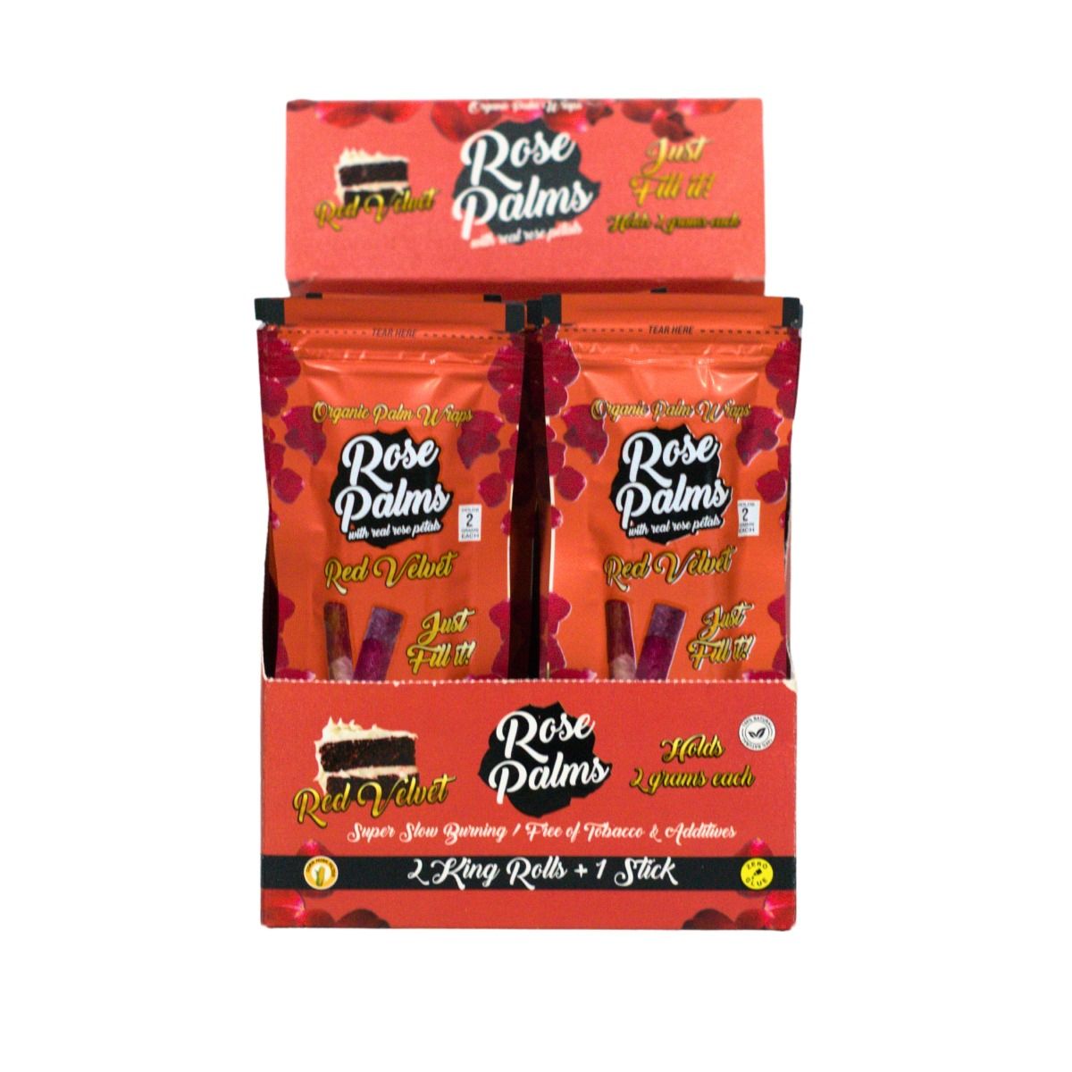 ROSE PALMS RED VELVET 2 KING ROLLS+1 STICK 20/1 GRAM.
