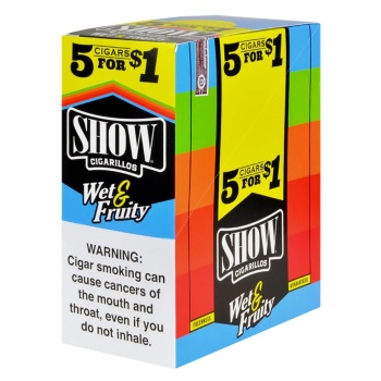 SHOW CIGARILLOS WET FRUITY 15/5PK. P.P5/$1.49.