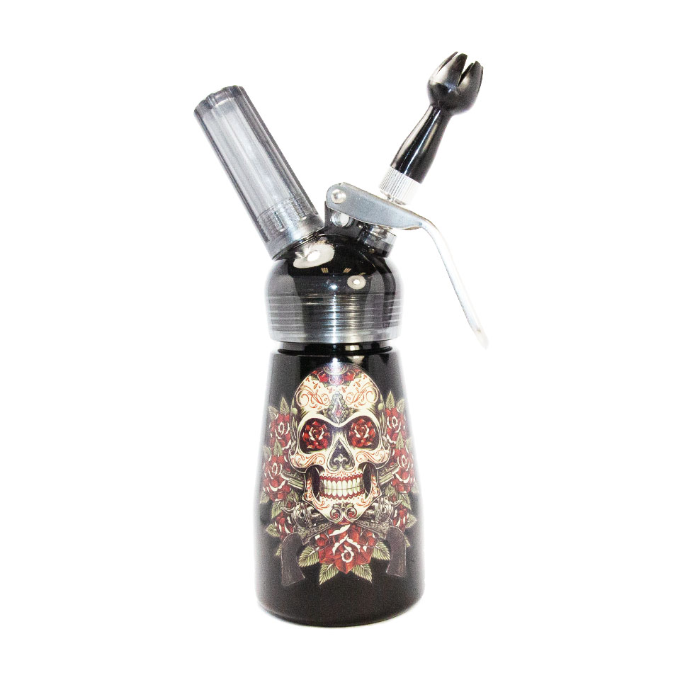 SPECIAL BLUE DISPENSER FLORAL SKULL 1/2PINT 1CT.